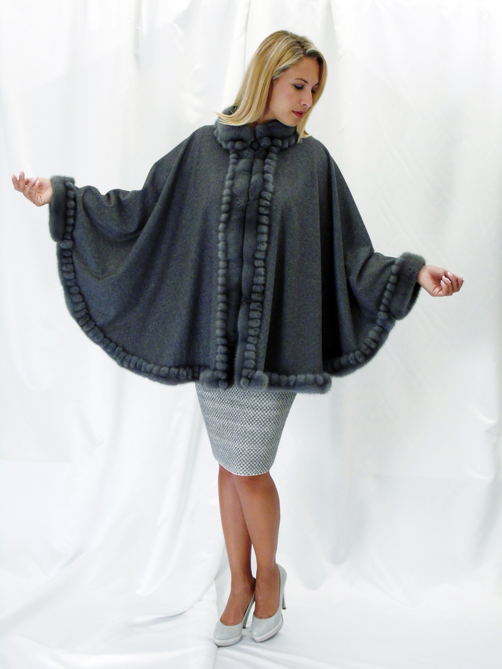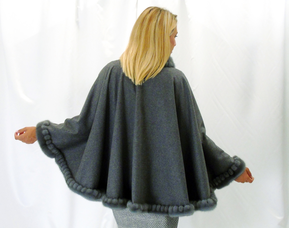 Kaschmircape grau mit Nerzbordure