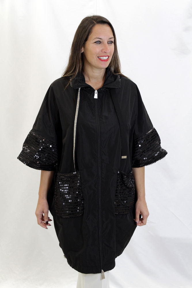 Black raincoat with sequin inserts