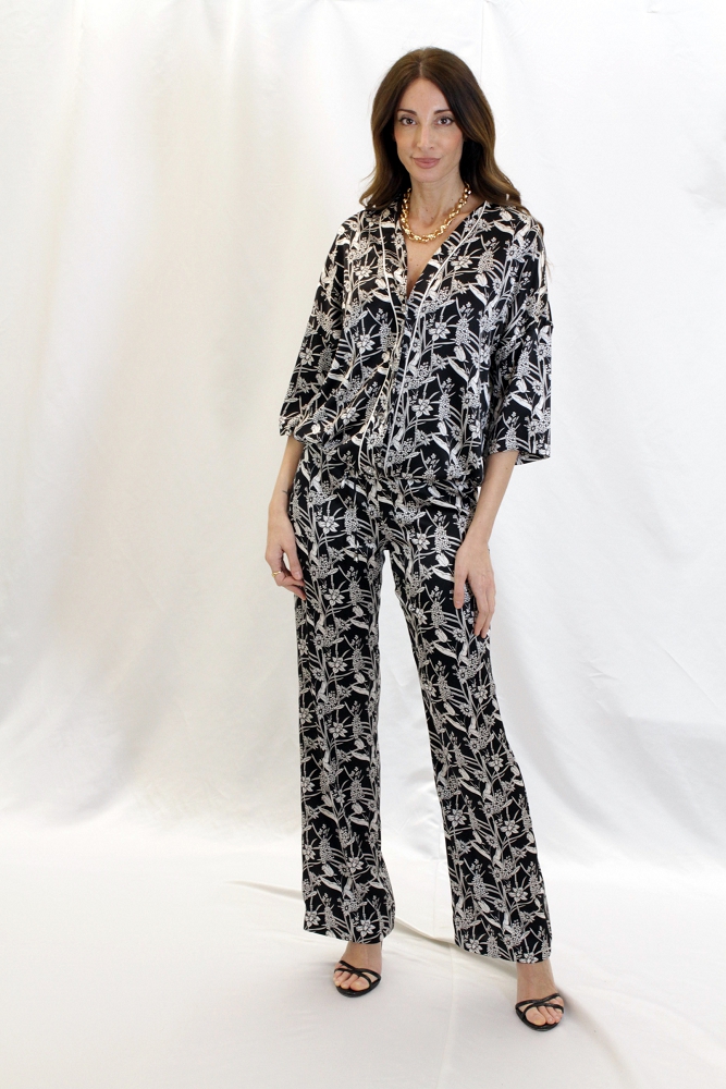Blouson seta bianco e nero fantasia floreale