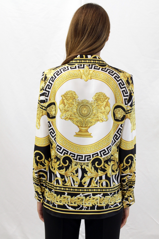 Camicia in twill seta nera e oro fantasia medaglioni